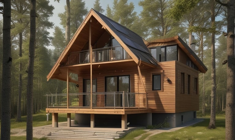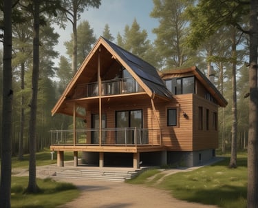 A serene woodland hideaway crafted from local timber, designed for natural ventilation and minimal environmental impact.